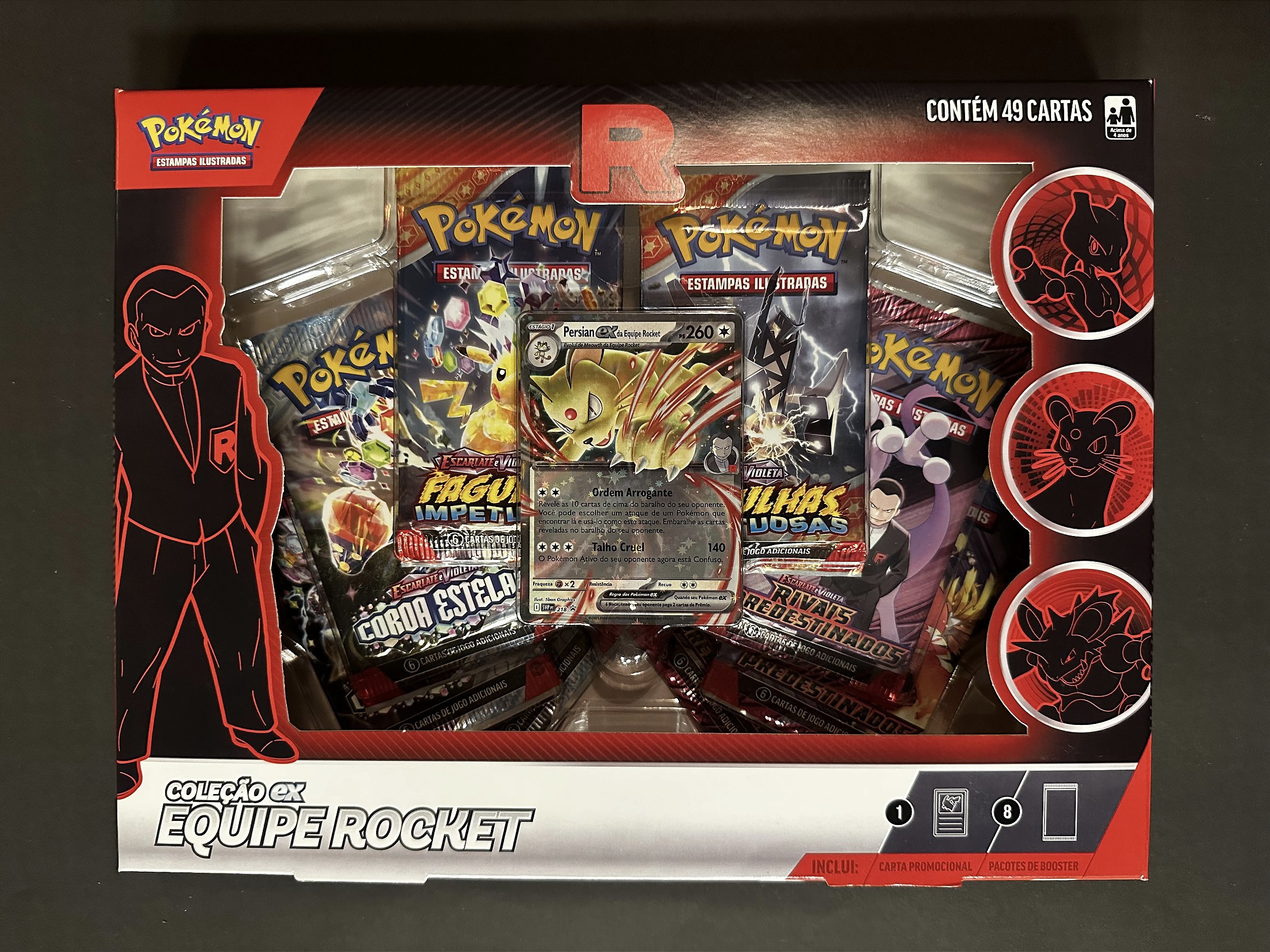 - 1 carta holográfica promocional de Mewtwo ex da Equipe Rocket, Nidoking ex da Equipe Rocket ou Persian ex da Equipe Rocket;